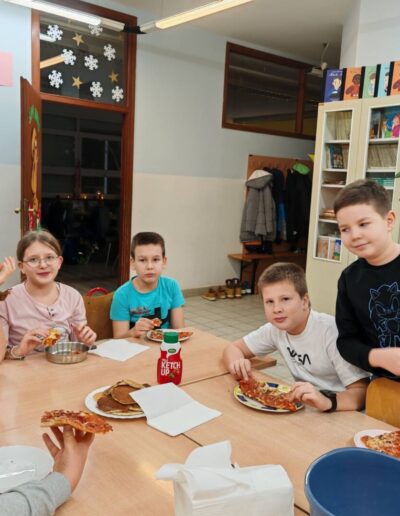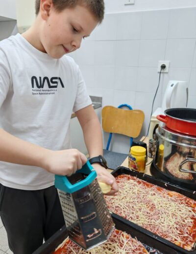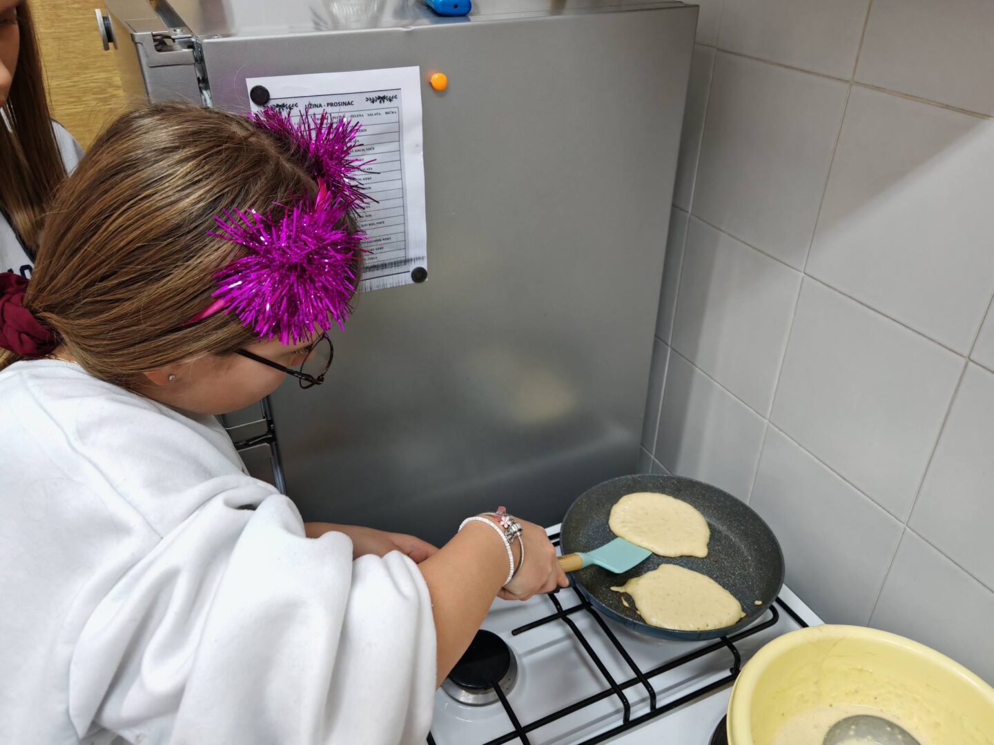 Nakon pripreme učionice za apsolutni komfor, uslijedila je i priprema obvezne hrane uz film – pizze! Dok su dječaci pripremali pizzu, djevojčice su pekle palačinke. Siti, započeli su promišljanje o najvažnijoj pojavi ljudskoga života – prijateljstvu, gledajući film Richie Rich!