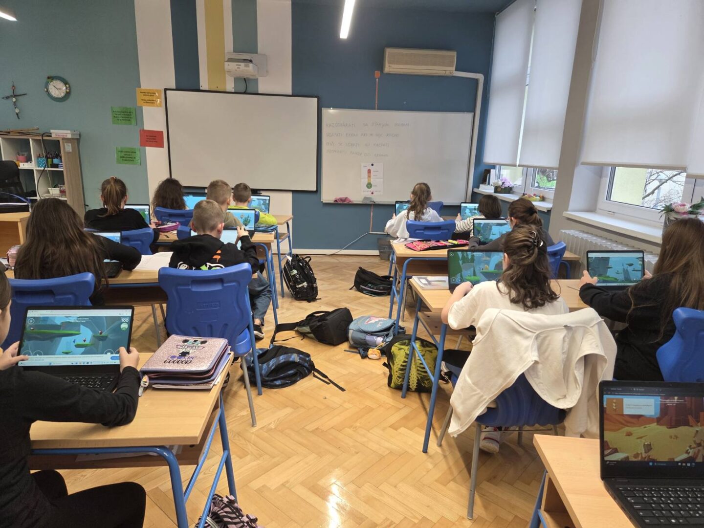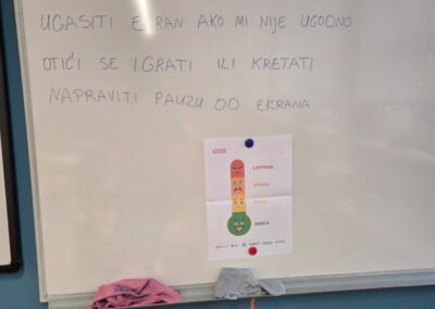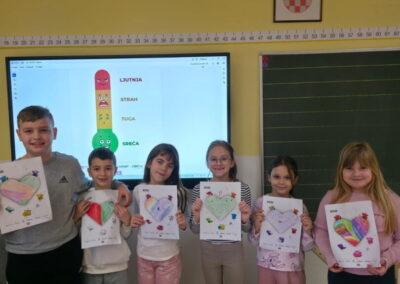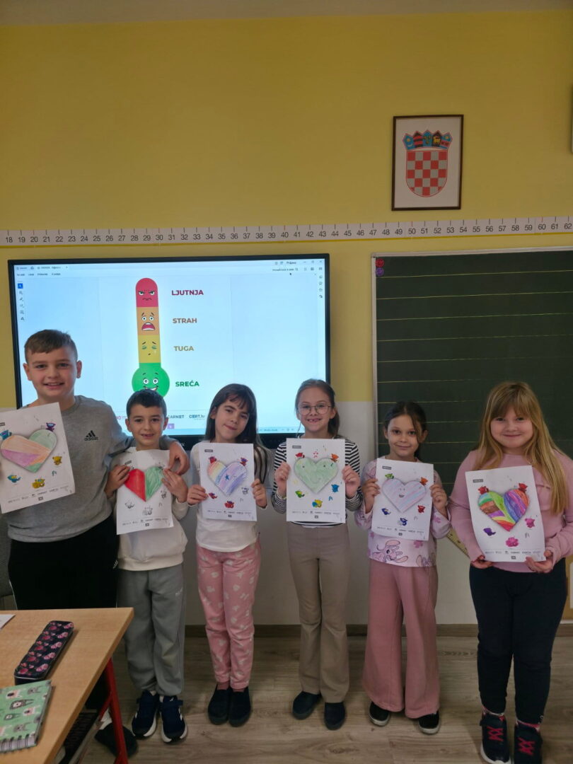 Učenici razredne nastave matične škole obilježili su Dan sigurnijeg interneta. Zajedno s učiteljicom informatike odradili su radionicu Centra za sigurniji internet – N@ica u svijetu emocija i ekrana i radionicu Budi Internet genijalac – Prepoznavanje osjećaja. Učenici su govorili kakve emocije izazivaju kod njih ekran i internet. Najčešća emocija je bila ljutnja. Učenici su dobili savjete kako izbjeći takvu emociju, npr. odmaknuti se od ekrana, razgovarati s učiteljicom/roditeljima, otići se igrati u prirodu… Nakon prepoznavanja emocija učili smo kako prepoznati emocije u razgovorima na digitalnim uređajima. Na kraju smo se zabavili igrajući igru o sigurnosti interneta – Interland.
