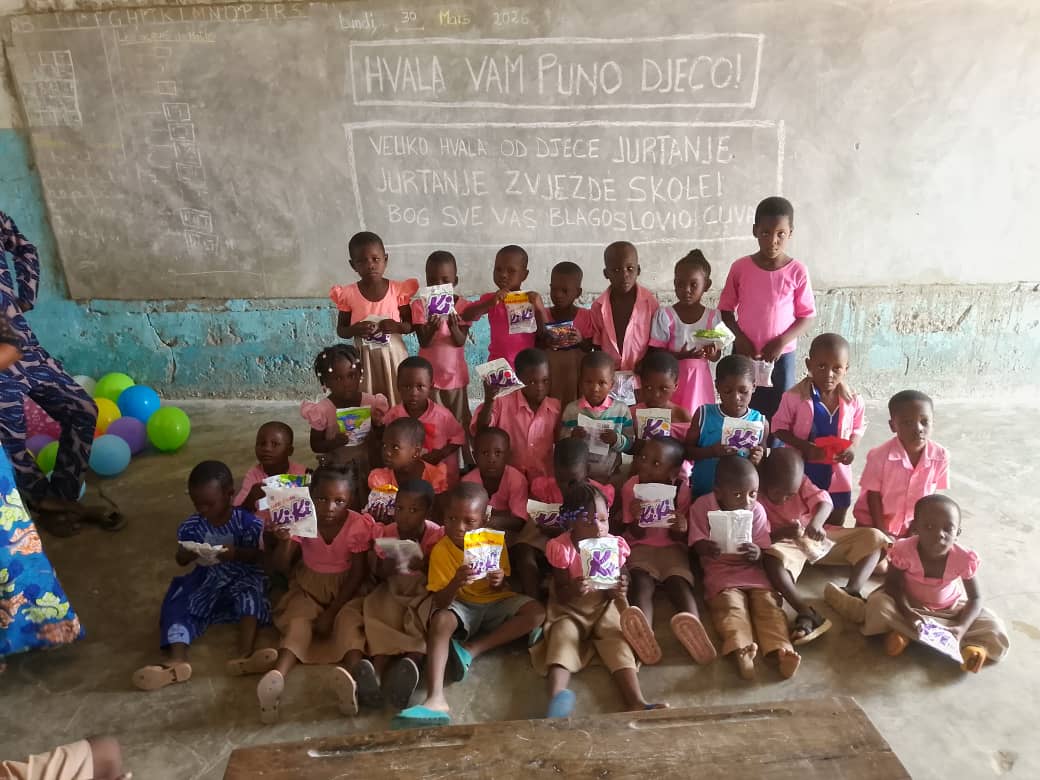 Tijekom korizme učenici naše škole prikupljali su bombone i balone kako bi za Uskrs razveselili učenike škole Jutarnja zvijezda u afričkom Beninu. Više od 25 kilograma slatkiša s. Mireille ponijela je u Afriku. Lijepo je znati da je naš dar razveselio daleke nam prijatelje i uljepšao im Uskrs.