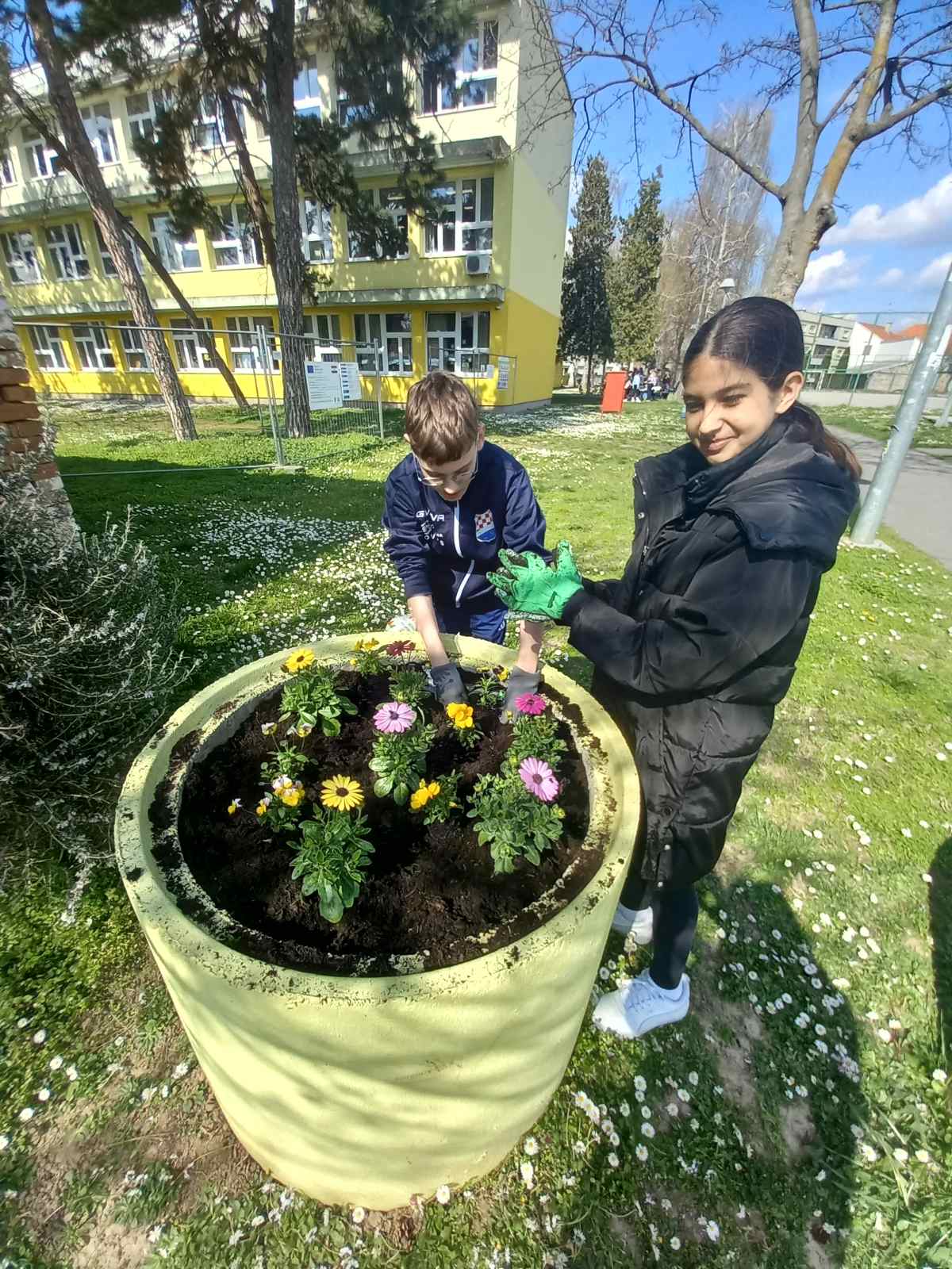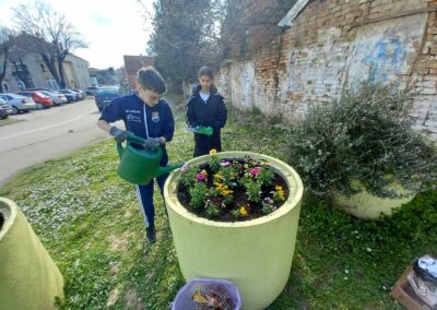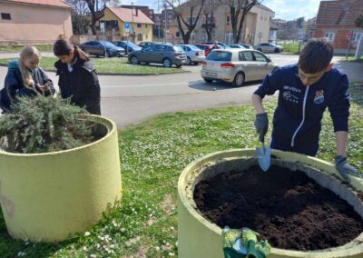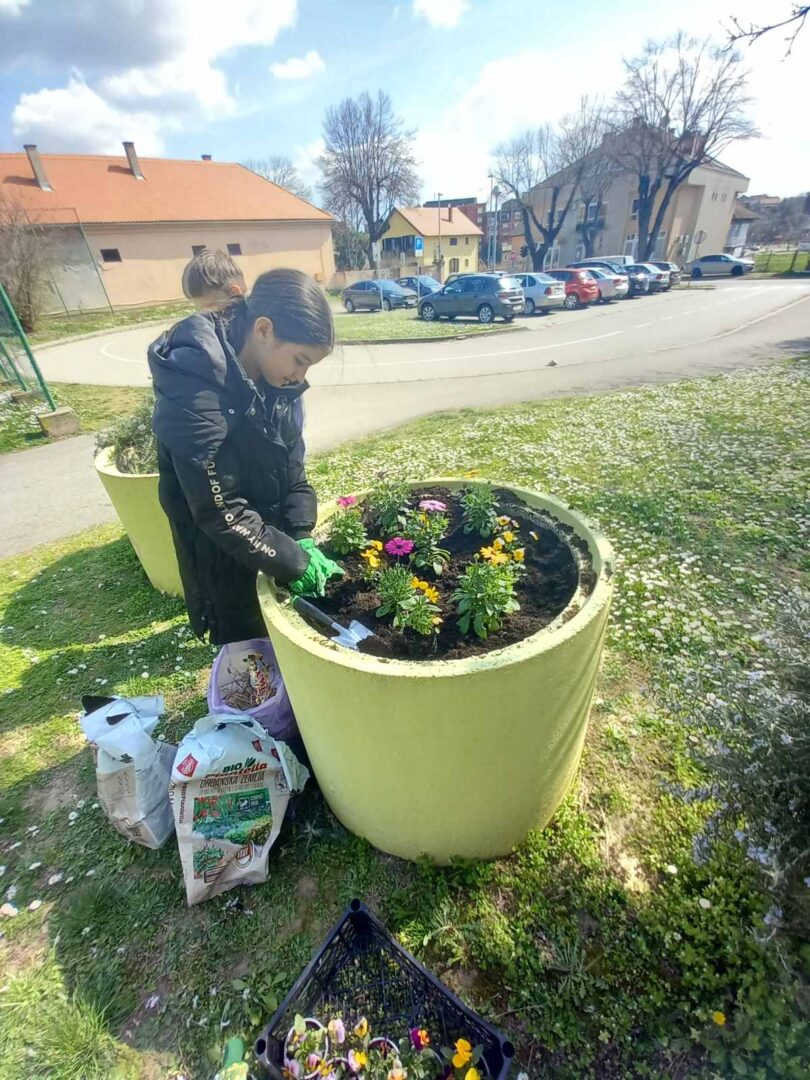 Učenici Volonterske skupine s početkom proljeća uredili su okoliš škole i posadili cvijeće.